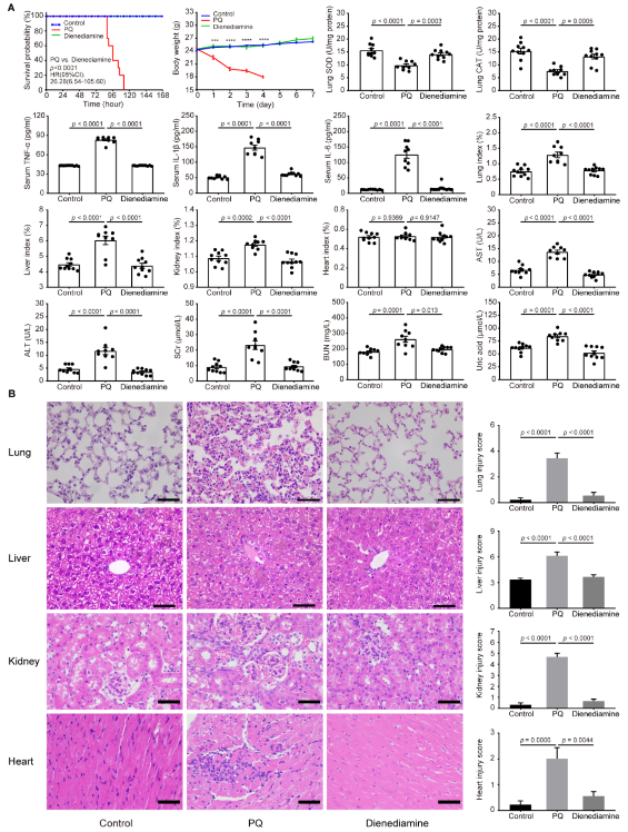 圖4. 雙烯雙胺與百草枯小鼠模型安全性評估