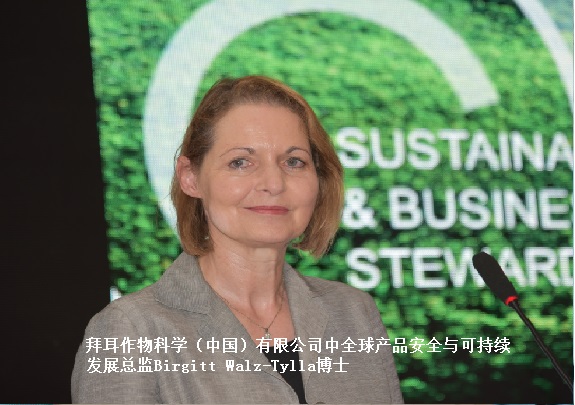 拜耳作物科學(中國)有限公司中全球產品安全與可持續發展總監Birgitt Walz-Tylla博士主要介紹了該公司全球可持續農業發展及產品安全管理戰略情況。她提到,農業可持續發展,首先需要保證農民收入,包括改善農民的生活環境、銷售收益等,只有這樣才能夠加強農民在農業上的投資,改善發展現狀,并不斷推進健康發展。