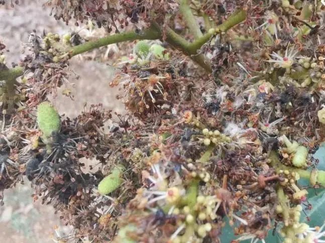 荔枝霜霉病在整個果期都會發生、為害,尤其以近成熟期為害嚴重。在連綿陰雨季,尤其是成熟期,特別容易爆發,一旦爆發,傳播速度特別快,容易造成大量落果。發病期用藥,一旦藥劑沒效或者見效慢,再次打藥防治為時已晚。同時由于荔枝對的敏感特性,一些國內外針對霜疫霉病的殺菌劑在荔枝上噴施后易產生藥害。