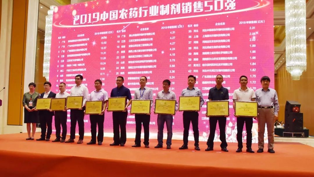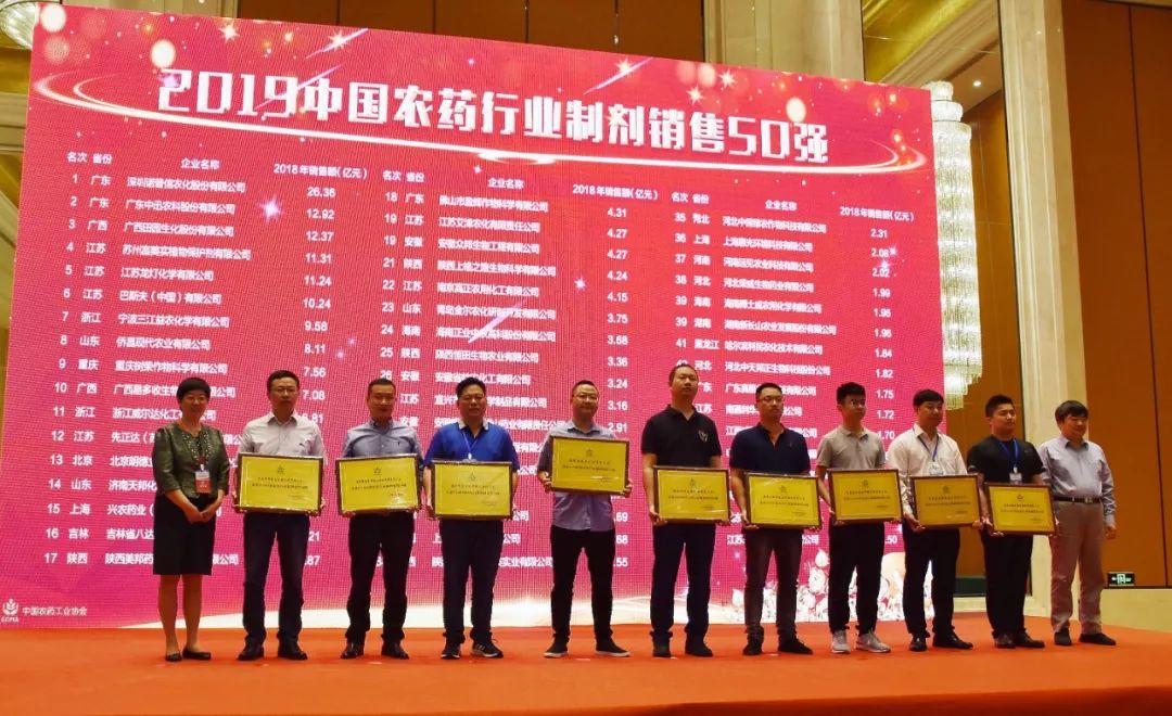 5月16日上午,在第六屆農藥行業經濟運行分析會暨農化行業排行榜發布會上,中國農藥工業協會隆重發布了“2019中國農藥行業制劑銷售50強”榜單,并舉行了頒獎儀式。